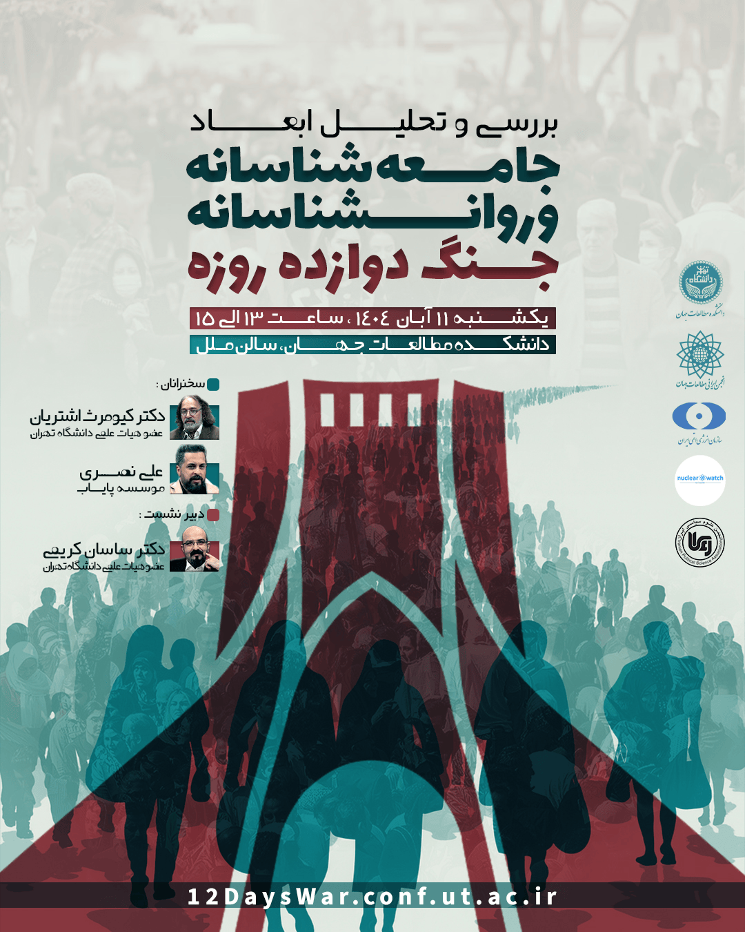 در این نشست که در میانه آبان 1404 در دانشکده مطالعات جهان دانشگاه تهران برگزار شد، میهمانان گرامی، جناب آقای دکتر کیومرث اشتریان، عضو هیأت علمی دانشگاه تهران و جناب آقای علی نصری، عضو مؤسسه پایاب با مدیریت آقای ساسان کریمی، عضو هیأت علمی دانشگاه تهران به بیان ابعاد روانشناسانه و جامعه شناسانه جنگ دوازده روزه پرداختند.